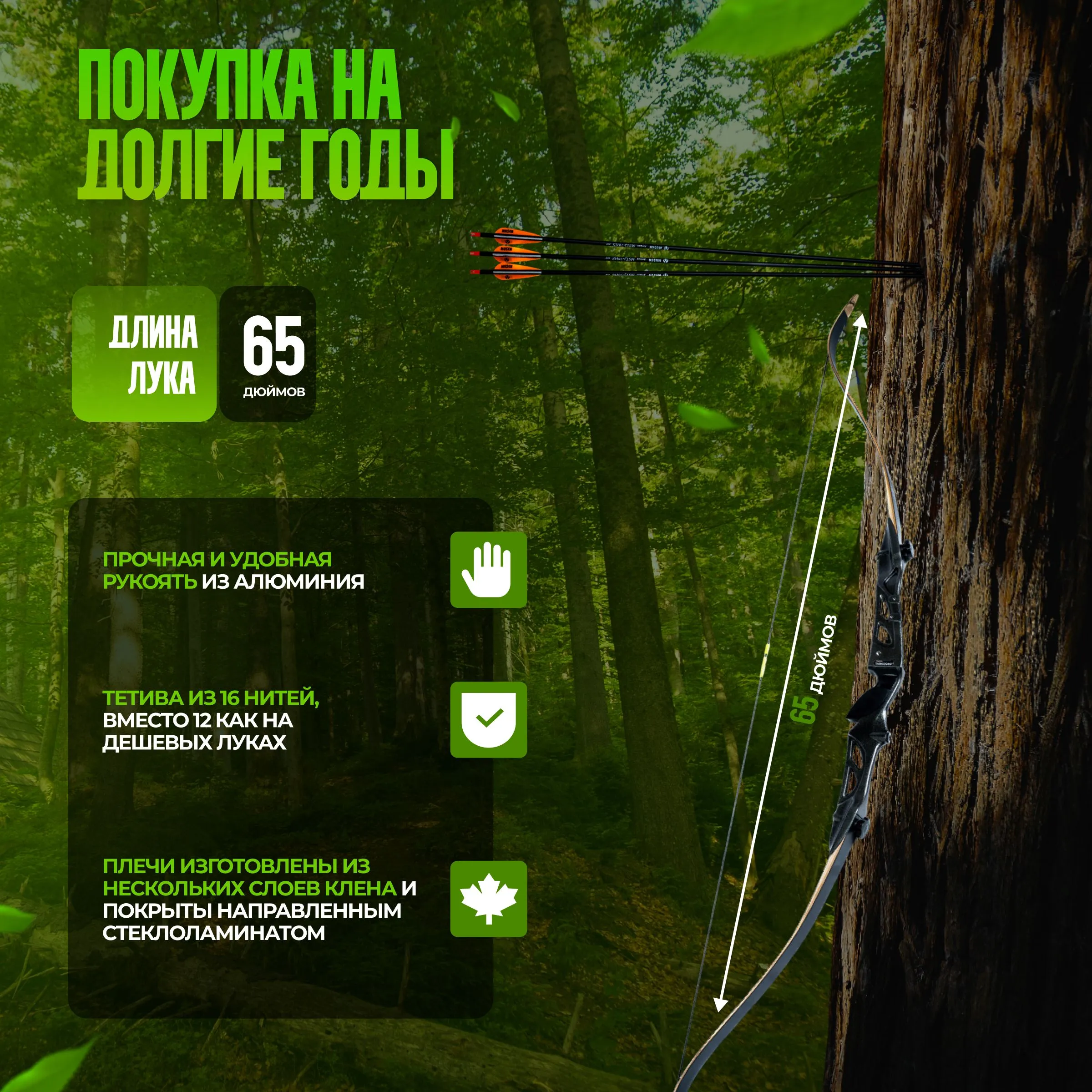1) Высочайшая точность – стабильный полет стрел даже на дальние дистанции.