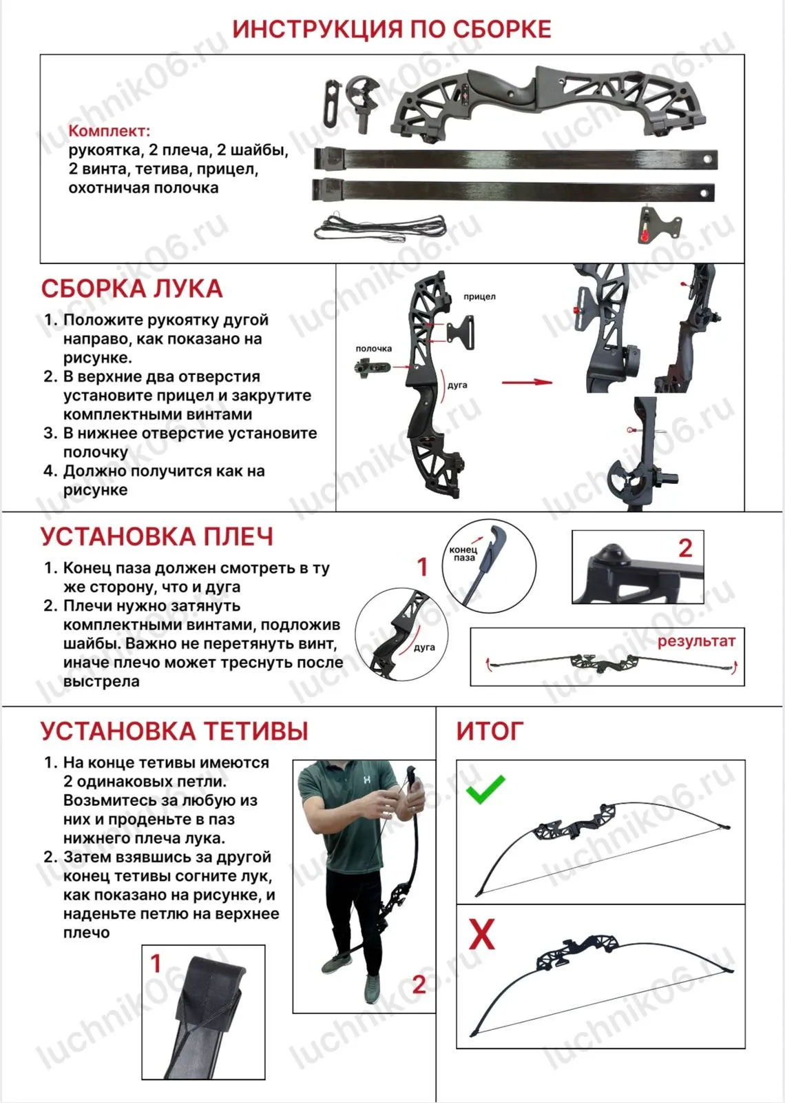 На встречу первым достижениям с нашим комплектом для новичков! Этот мощный спортивный лук идеален для стрельбы на охоте и тренировок. Взрослый вариант, прочный и надежный. Высокая точность и комфорт стрельбы гарантированы. Отлично подойдет для начинающих и опытных стрелков. Приобретайте наш лук и воплощайте свои лучшие достижения! В комплекте 6 стрел.