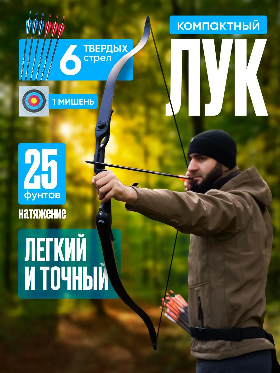 (25 Lbs) - это спортивный, мощный, быстрый лук для взрослых, с вытягом до 31"+ дюйма. Лук идеально подойдет для боуфишинга, охоты, и конечно же, развлекательной стрельбы по мишеням. Алюминиевая рукоятка лука оснащена съемной резиновой накладкой, плечи изготовлены из нескольких слоев дерева и покрыты направленным стеклоламинатом. В комплектации сам лук, тетива, пластиковая полочка, 6 стрел (01.12.24г), бумажная мишень а так же шайба для возможности установки на лук полочки от блочного лука. Очень качественный и надежный лук!