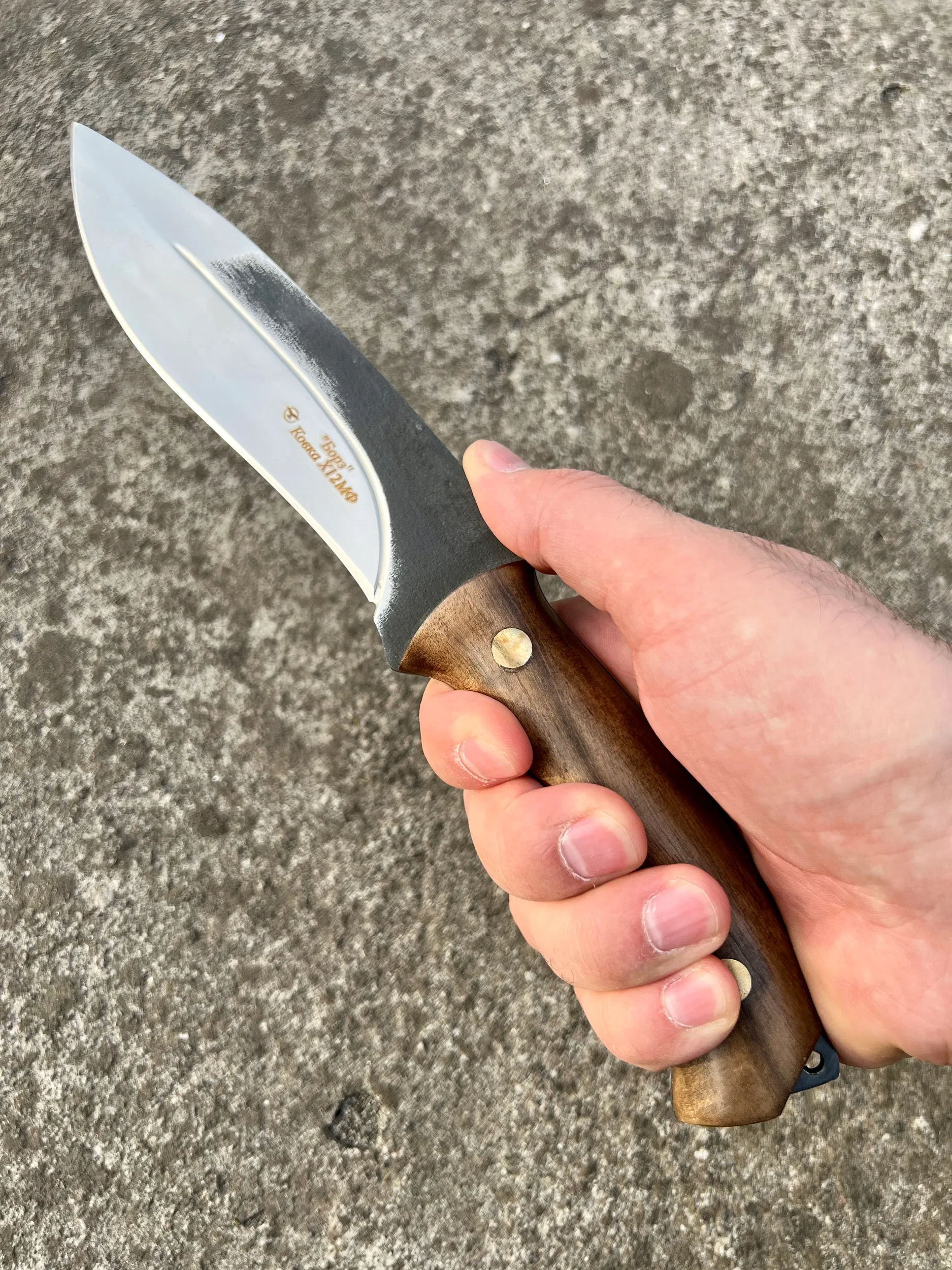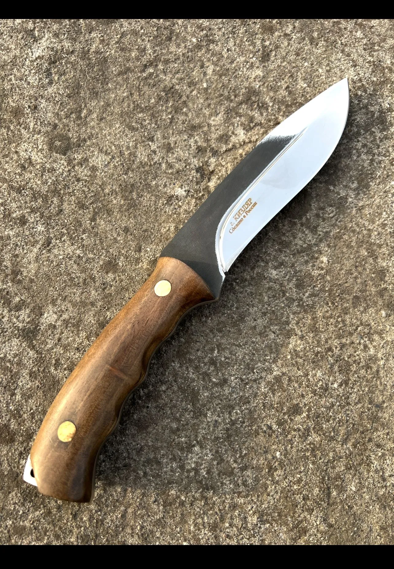 Кизлярский туристический нож Борз из Ковки Х12МФ рукоять Орех . Отличный подарок для мужчины. В комплекте идут ножны из натуральной кожи. Отлично подойдет как для охоты, рыбалки и туризма, так и в качестве ножа на подарок мужу, отцу, брату, мужчине.