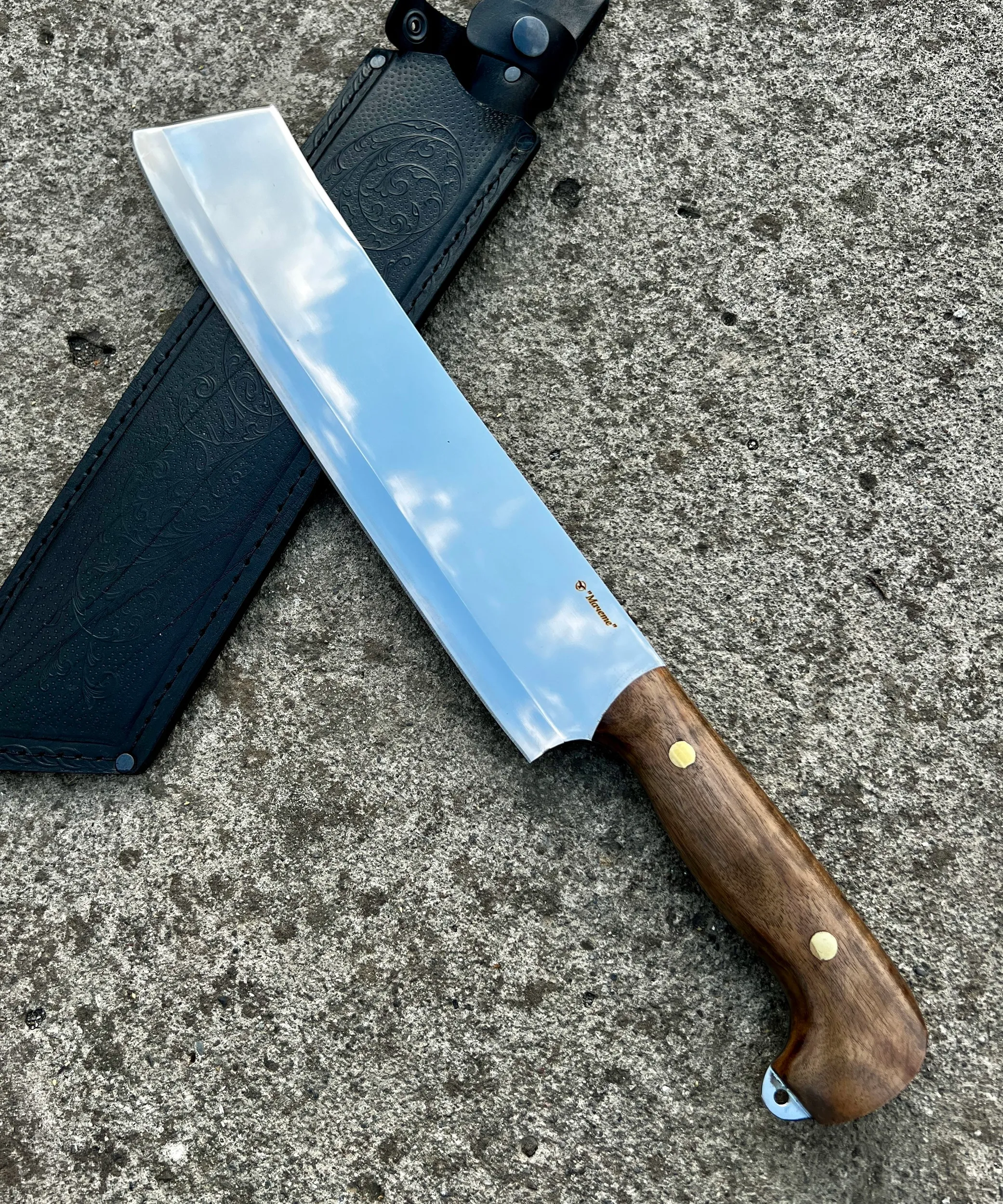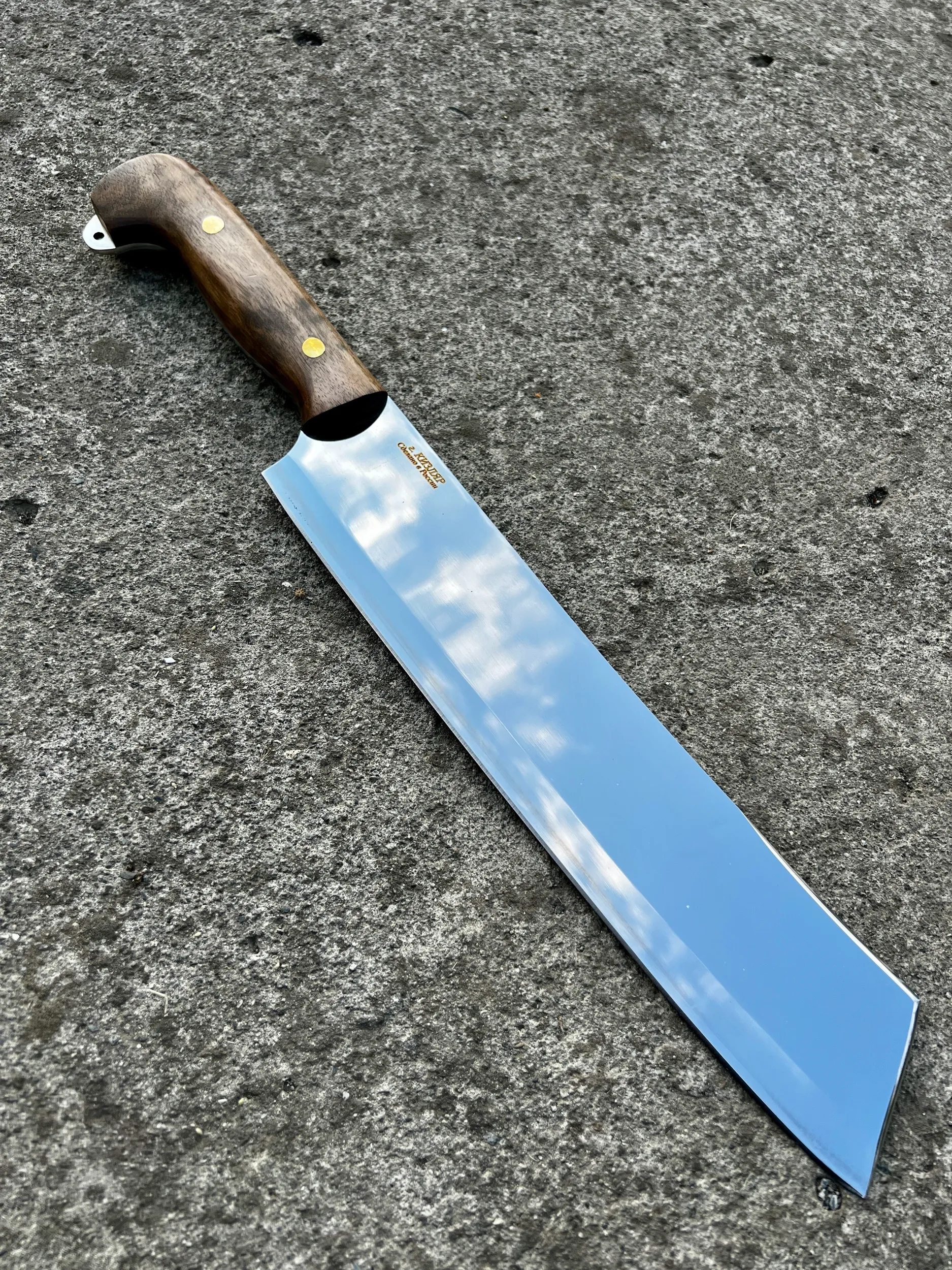 Нож "Мачете" изготовленный из стали 65х13, с рукоятью из кавказского ореха. Отличный удобный разделочный нож, превосходно держит заточку. Справится с любой задачей! Шикарный подарок любому мужчине!