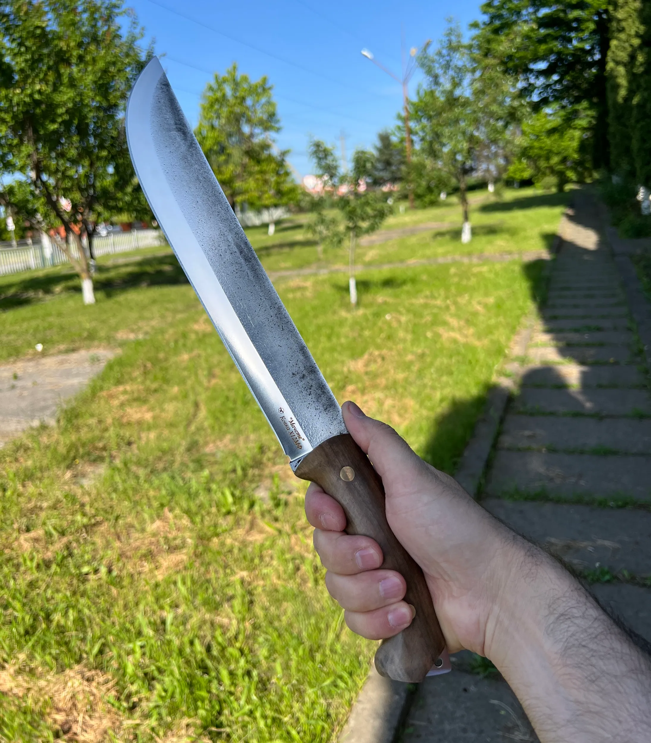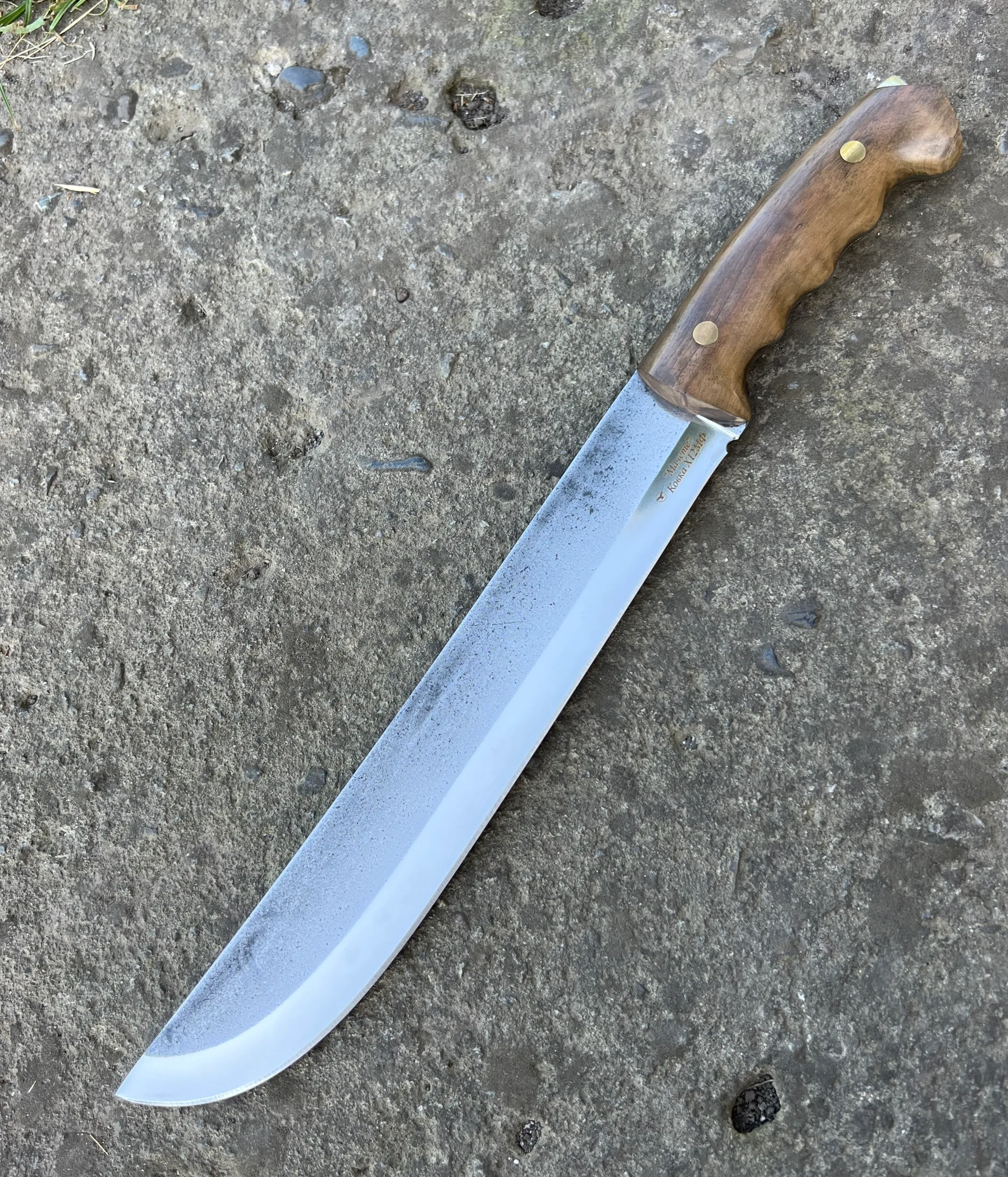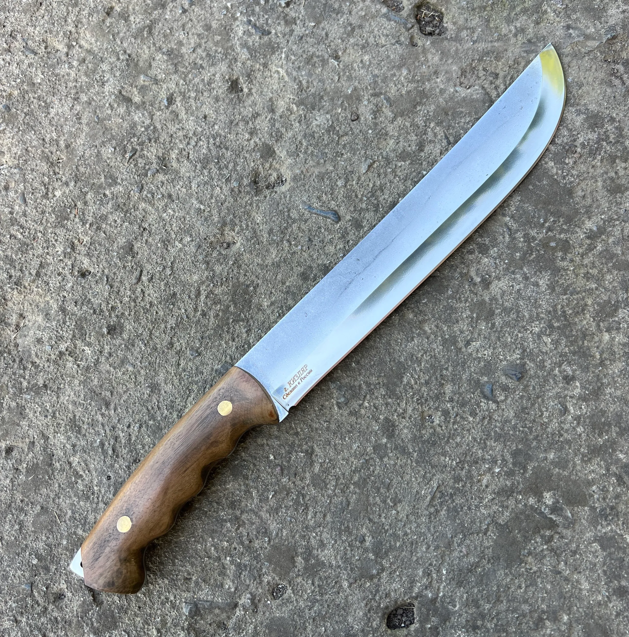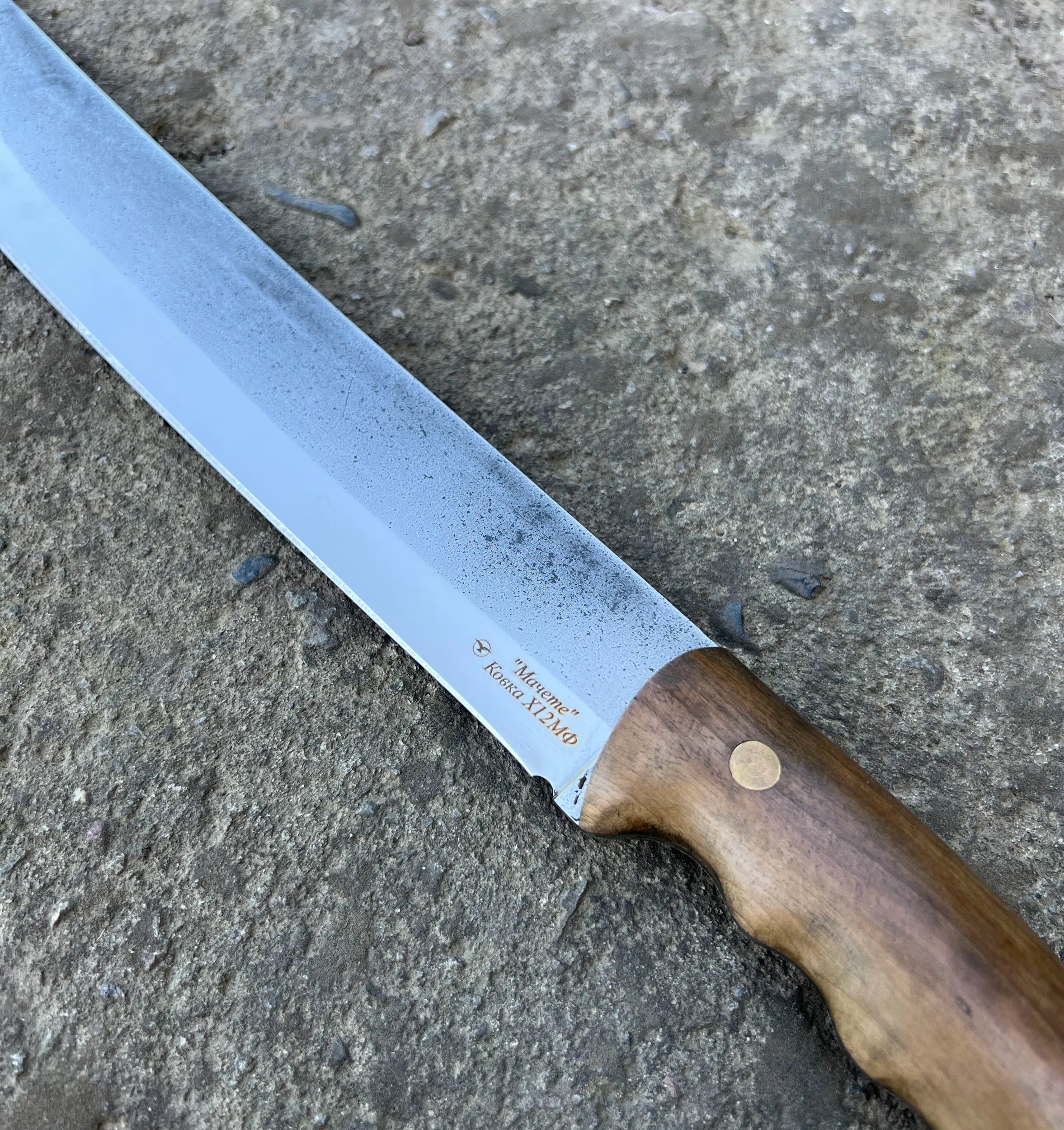 Нож "Мачете" изготовленный из стали Х12МФ, с рукоятью из кавказского ореха.(ФУЛТАНГ) Отличный удобный разделочный нож, превосходно держит заточку. Справится с любой задачей! Шикарный подарок любому мужчине!