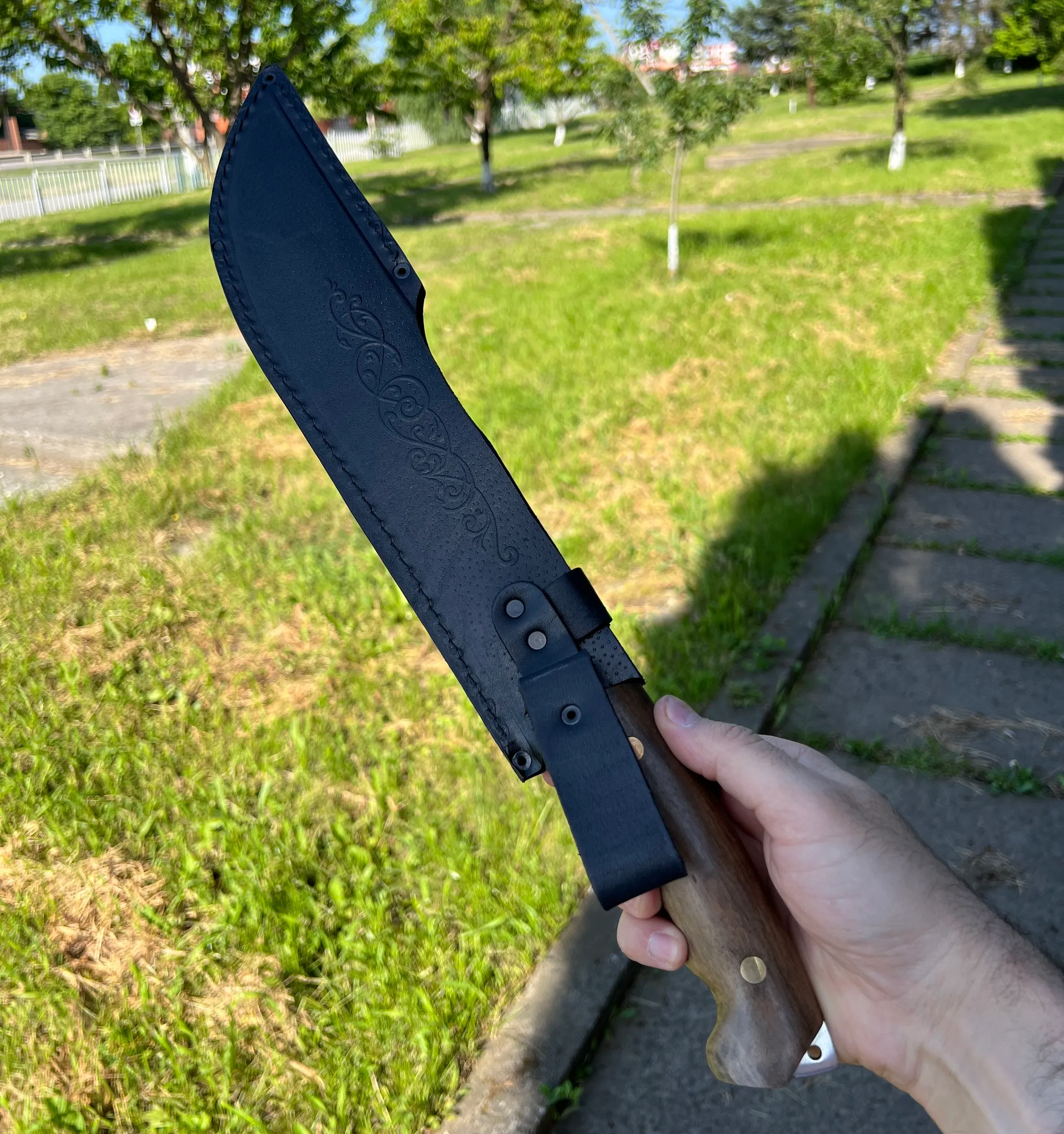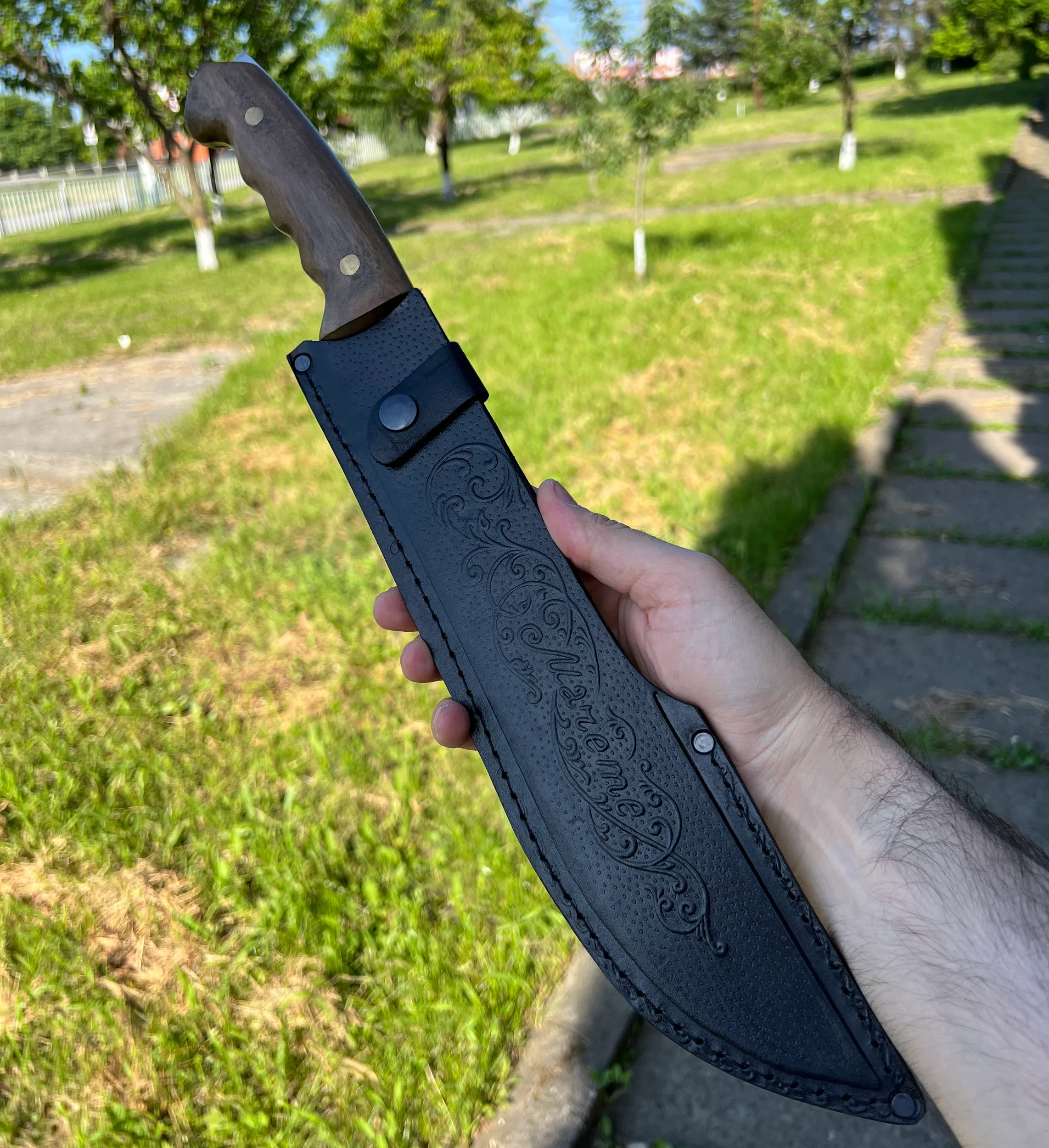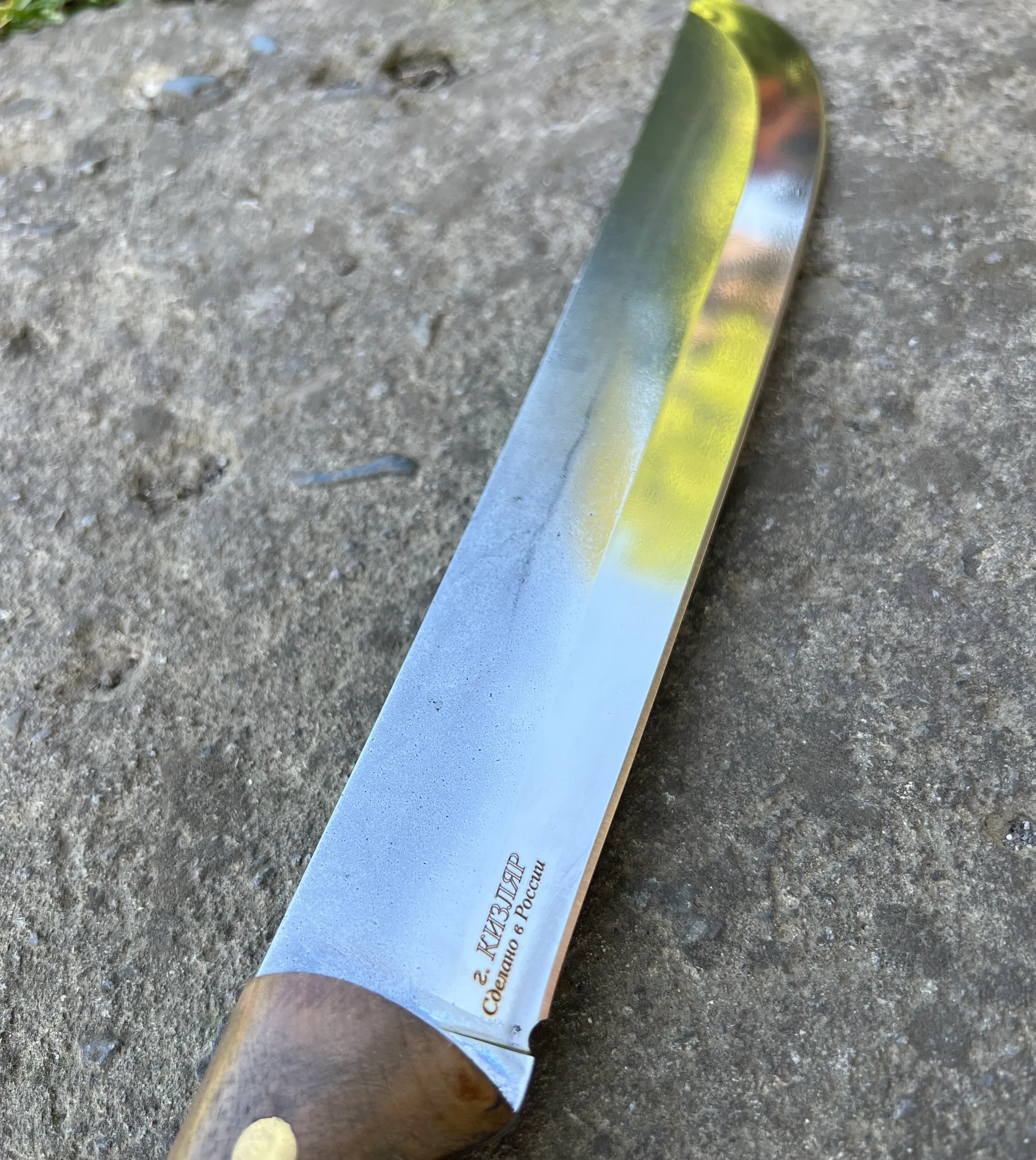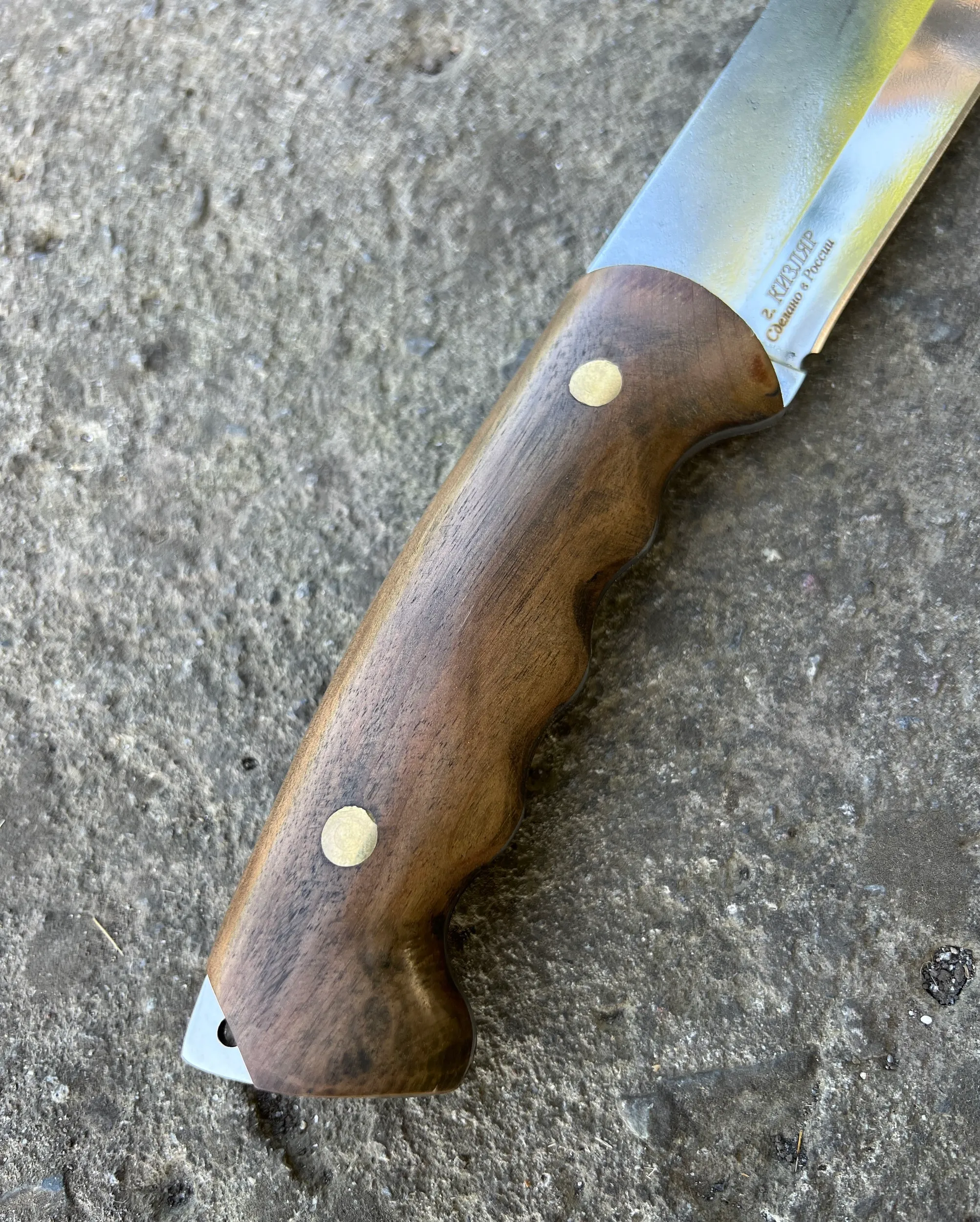 Нож "Мачете" изготовленный из стали Х12МФ, с рукоятью из кавказского ореха.(ФУЛТАНГ) Отличный удобный разделочный нож, превосходно держит заточку. Справится с любой задачей! Шикарный подарок любому мужчине!