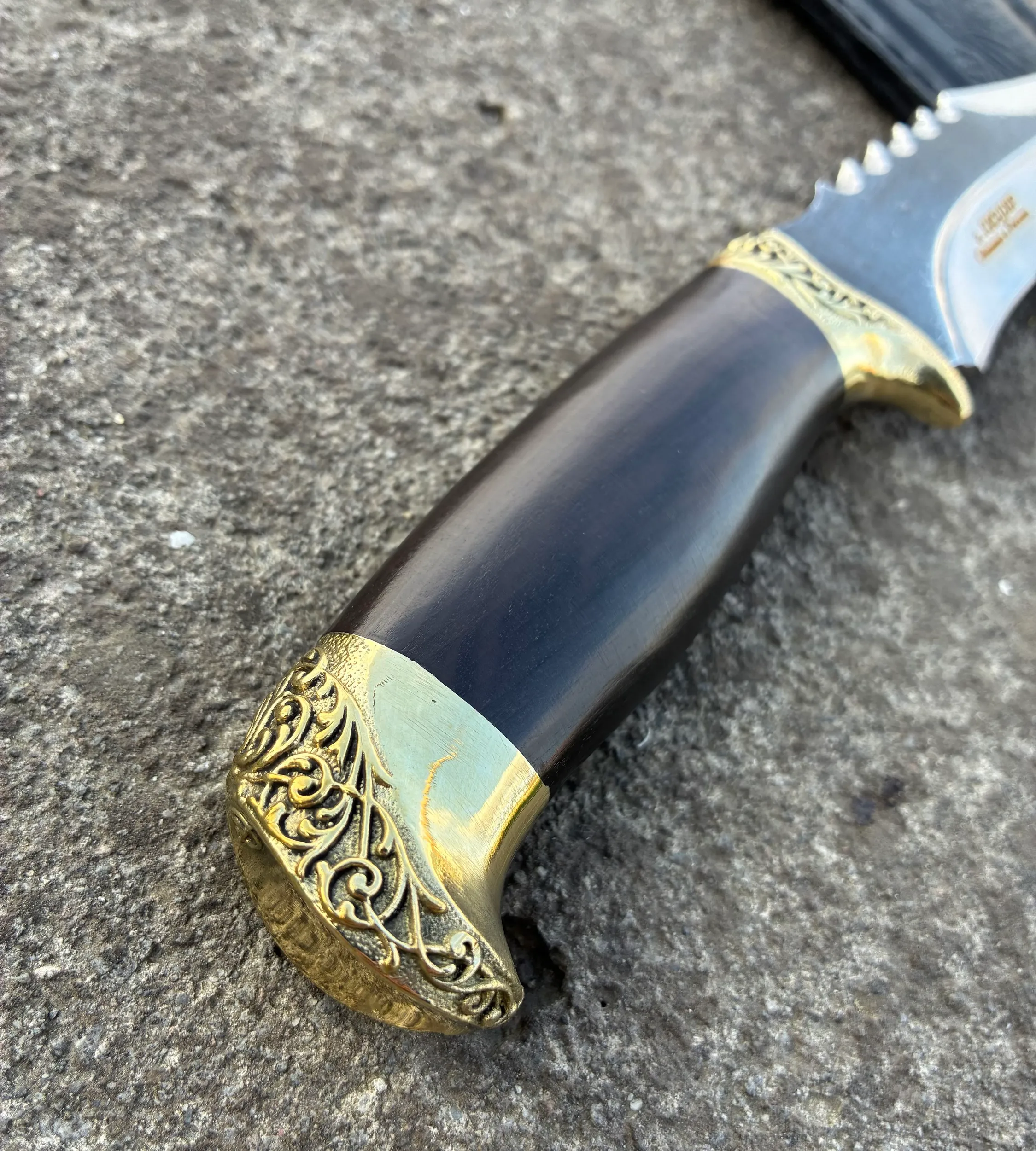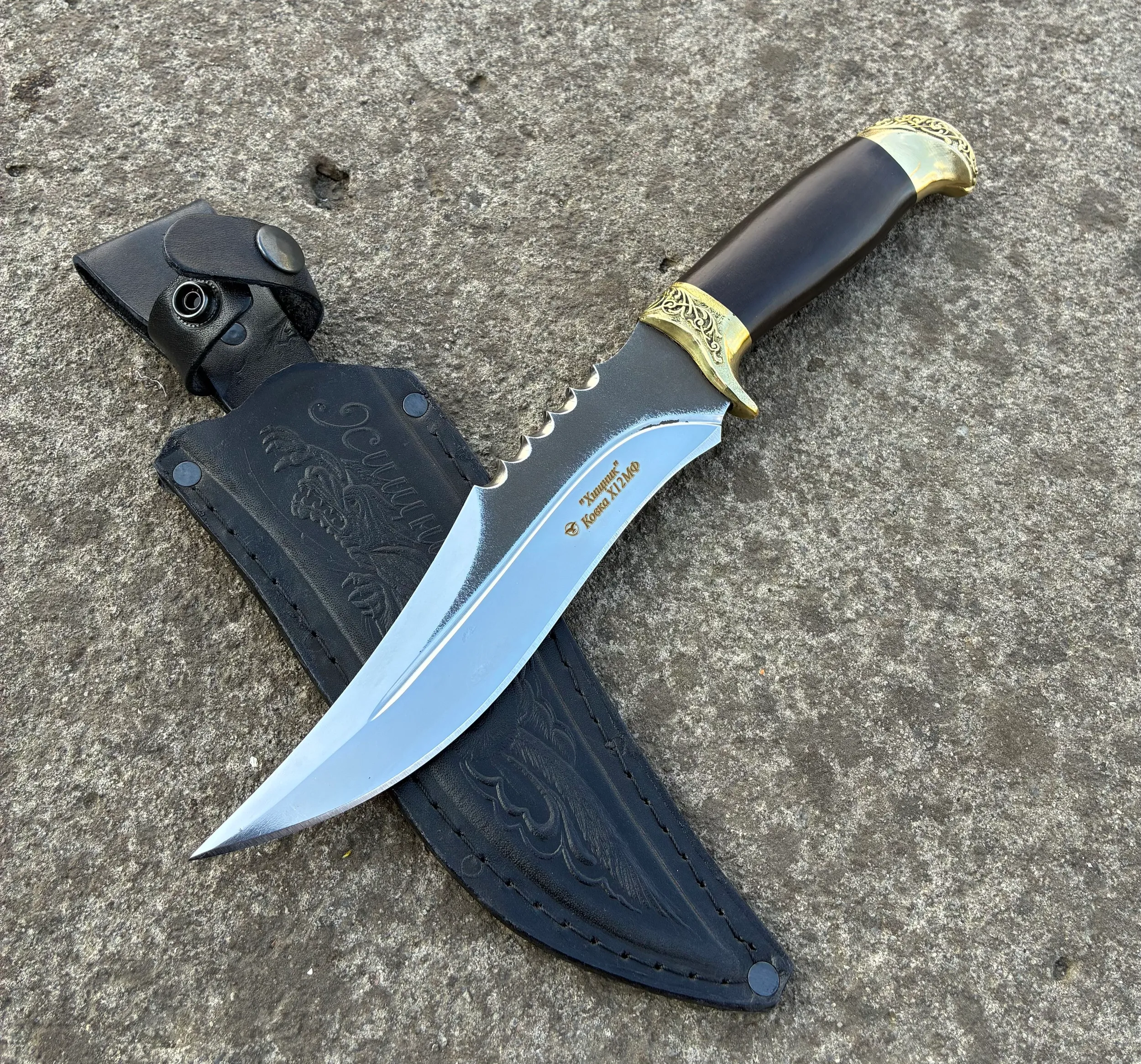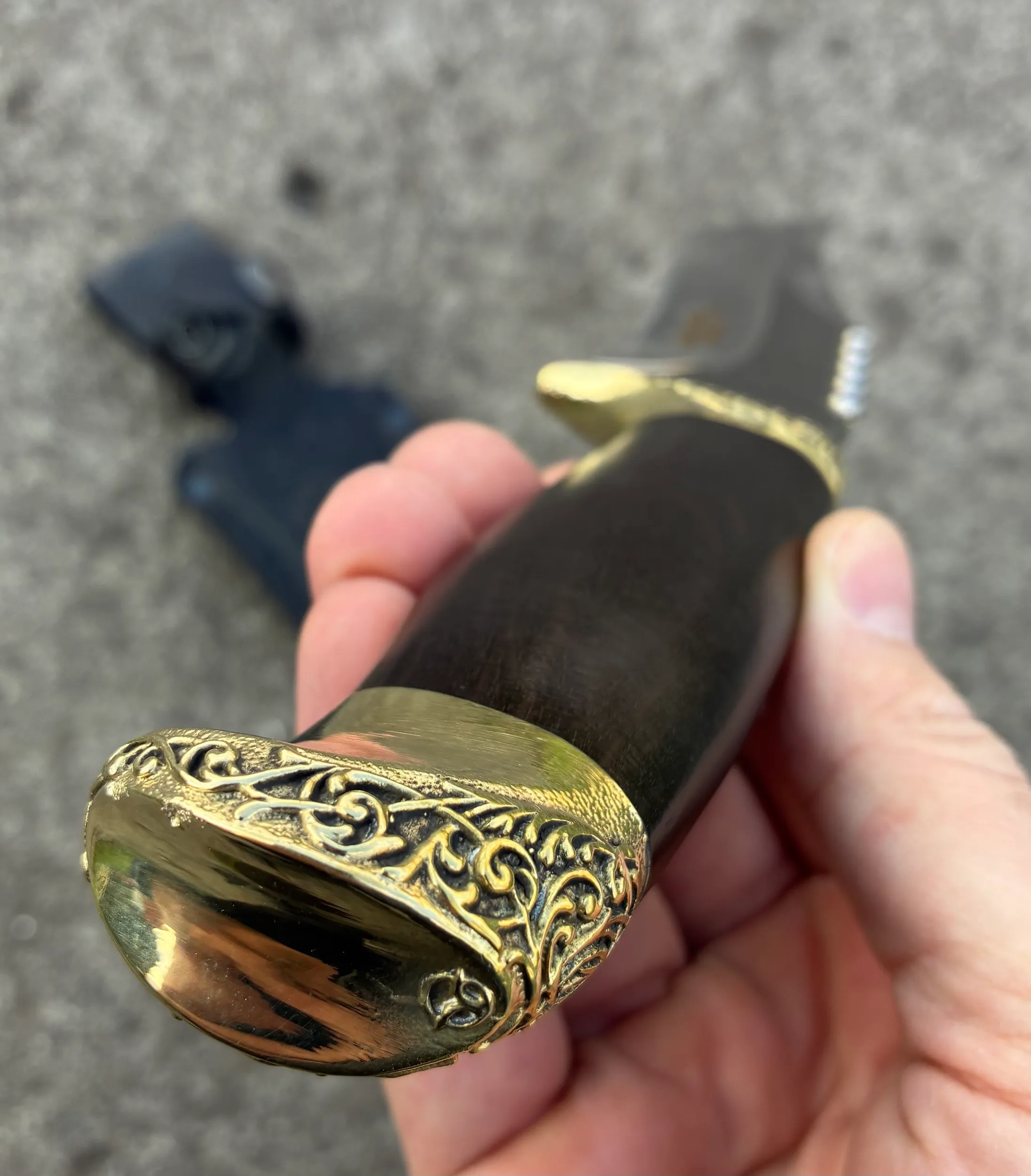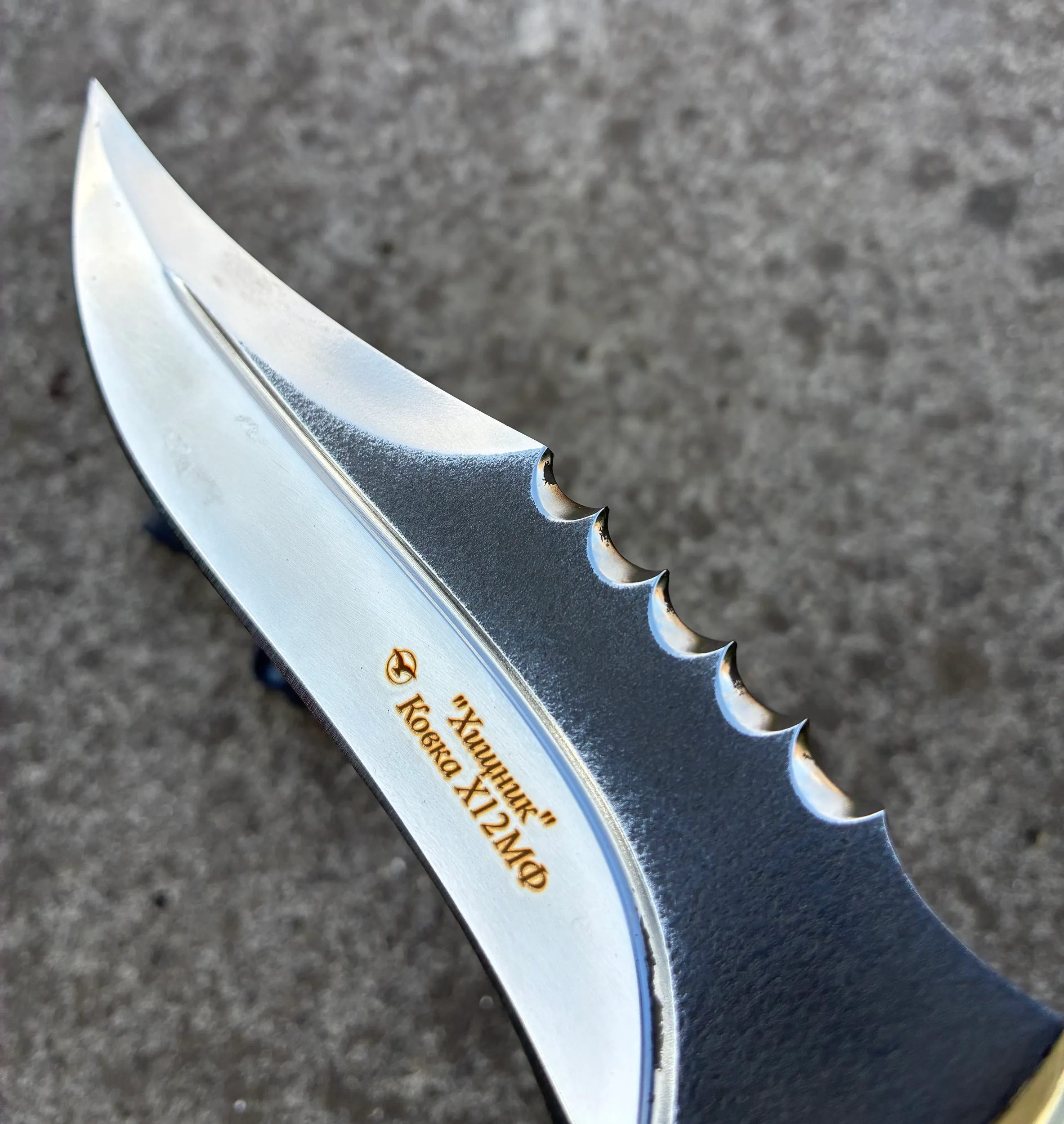 Кованый клинок из стали Х12МФ обеспечивает высокую прочность и долговечность. Твердость 58–60 HRC гарантирует сохранение остроты даже после длительного использования.