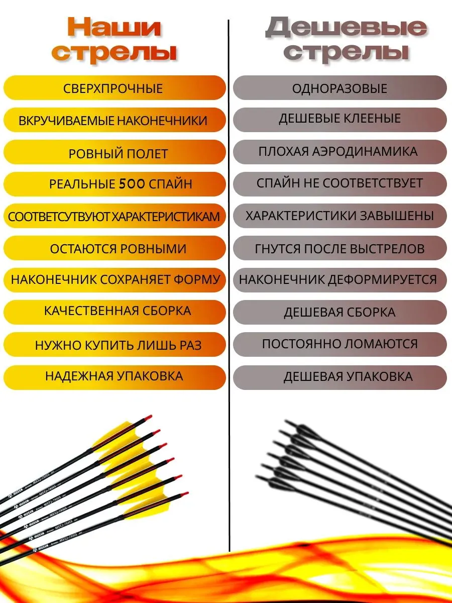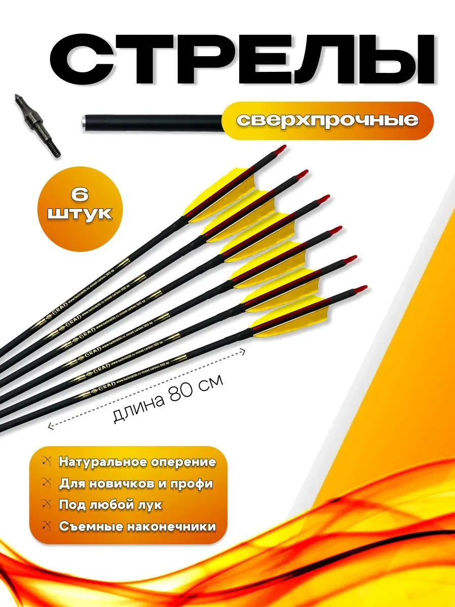 Набор стрел GRAD (6шт) — самые качественные стрелы с натуральным оперением для лука на маркетплейсе! Изготовлены из микс карбона для невероятной прочности и точности. Забудьте о поломках и промахах! GRAD гарантирует высокую скорость, дальность и стабильность полета. Превосходное качество по доступной цене! Закажите свой набор прямо сейчас и ощутите разницу!