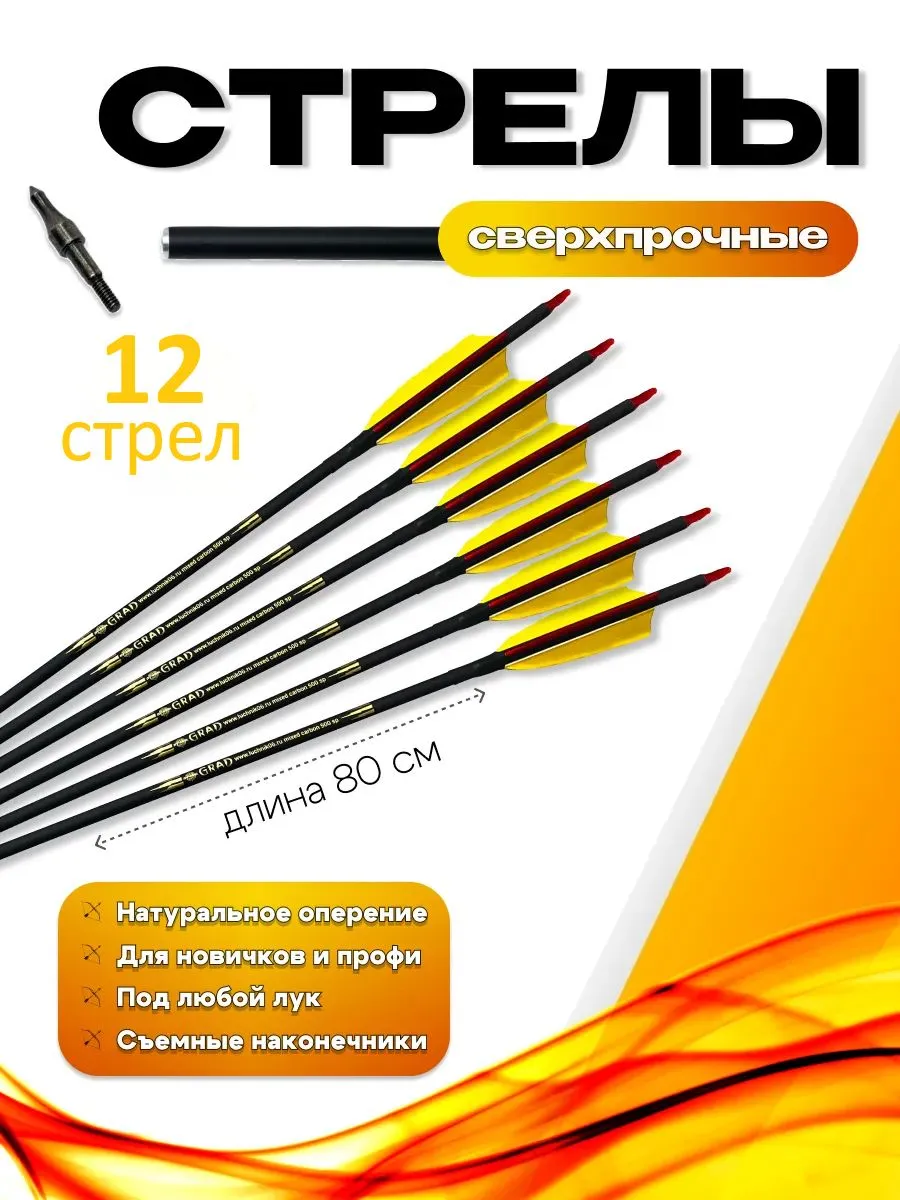 Набор стрел GRAD (12шт) — самые качественные стрелы с натуральным оперением для лука на маркетплейсе! Изготовлены из микс карбона для невероятной прочности и точности. Забудьте о поломках и промахах! GRAD гарантирует высокую скорость, дальность и стабильность полета. Превосходное качество по доступной цене! Закажите свой набор прямо сейчас и ощутите разницу!